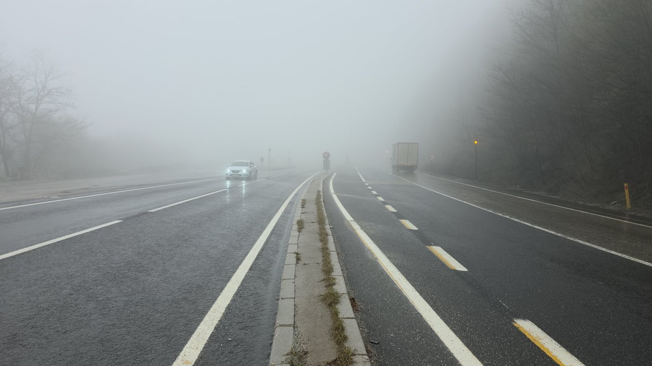 Karayolları ekipleri de yol kenarlarında bulunan sis lambalarını yakarak görüş mesafesine yardımcı oluyor.